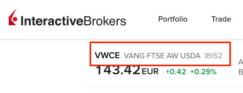 Šiaip VWCE pilnas pavadinimas Vanguard FTSE All-World UCITS ETF (USD) Accumulating, tai IBKR rodomas VANG FTSE AW USDA yra tiesiog šio ilgo pavadinimo trumpinys.