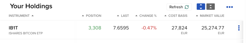 Kaip tik praeitą savaitę atsisakiau mėnesinio pirkimo per Kraken (kol kas palieku viską ten, nejudinu), ir įsigijau pirmas IB1T pozicijas. Na o dabar ir šitas post’as. Nu miela malonu taip sakant :))