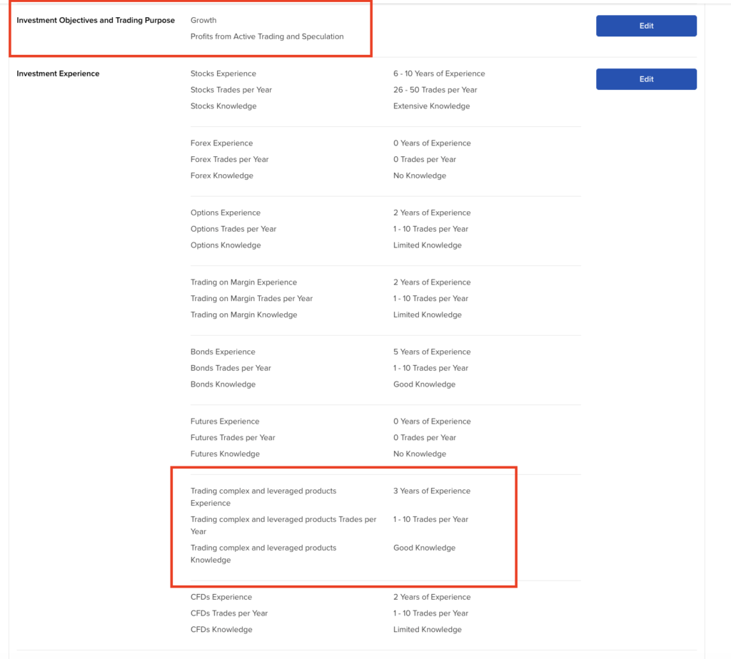 Negaliu įsigyti IB1T, nes IBKR sako, kad neatitinku reikalavimų gauti Complex or Leveraged Exchange Traded Products leidimą🫤 Perbandžiau visus Financial Profile nustatymus, belieka pabandyti tik NET annual income užkelti.